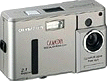 C-2020 ZDigitale compact zoom (3x optical & 2,5x digital tele) camera met 2,1 miljoen pixel (1600x1200) CCD, 4,5 cm TFT monitor en vele instellingen (zoals focus, ISO waarde en witballans). Kan QuickTime-video, zwart-wit, sepia en black-/whiteboard opnames maken en komt standaard met een afstandsbediening, 8 Mb SmartMedia kaart (Max. 64 Mb), software, kabels en batterijen. |